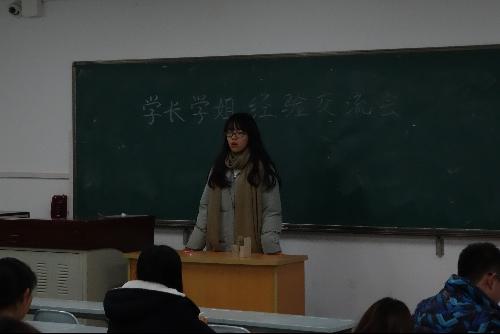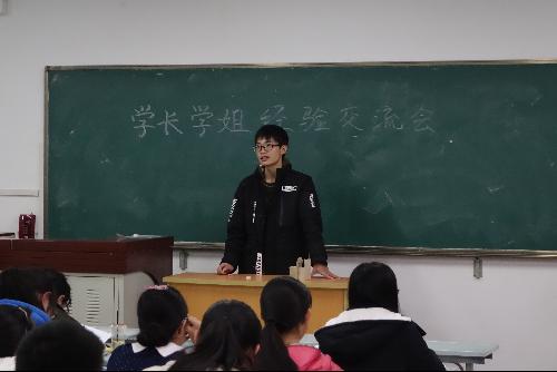会议开始时,学习部部长江伟康就本次活动的目的和意义发表讲话,他分别从明确大学目标,丰富课余活动,有效的学习方法,规划日常时间等不同的角度来介绍大学学习的方法和特点。通过介绍我们了解到,大学阶段的学习需要充分发挥学习的主动性、创造性,同学们获取知识的渠道更加多样化。大学的生活环境与之前有所不同,大家生活习惯可能存在差异,主动地加强沟通和交流、互相理解和关心成为一种需要。进入大学同学们应树立自立自强自信自律的生活意识,提高明辨是非的能力,要通过虚心求教、细心观察、大胆实践等方法来积累学习生活经验。接下来15级优秀学生代表任泓蒨主要描述了学习方面的内容:如何高效率听老师讲课,课外怎么查漏补缺,怎样拿高分,我们了解到,大学期间同学们应树立自主学习、全面学习、创新学习、合作学习的理念,举一反三,求真务实。最后15级另外一位优秀学生刘嘉琦分享了她的学习和生活经验,她认为大学是知识传播和运用的基地,大家可以在这里广泛汲取各种新的思想和学术成果,在学习的同时,又要加强自我修养,提高道德素质和法律素质。