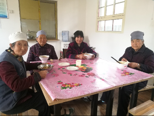村主任助理首先抵达绛南村村委会,与村主任简要沟通了解情况后,便前往幸福院看望老人。到了午饭时间,老人们陆陆续续来到幸福院,村助热情的同老人们进行交流,关心老人的身体健康状况,考虑到空巢老人很少拥有一张自己的照片,于是采用“咔嚓一声,留下美好”的方式,为老人们拍下他们共餐时其乐融融的画面,并承诺将照片洗出送给他们留作纪念。虽然有些老人听不见,并且语言交流上有些困难,但在村助一遍又一遍的大声祝福和温暖行动下,从慈祥的笑脸中感受到了他们的欣慰与满足。