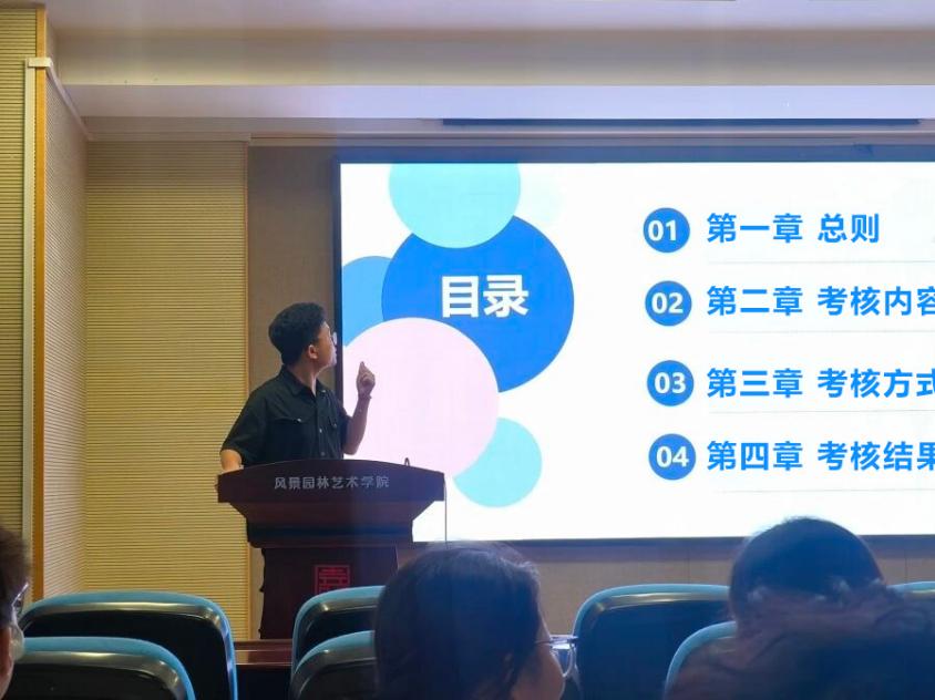 随后,毛坤老师围绕《风景园林艺术学院学生会考核制度》五大核心章节系统解读。在考核目的与原则部分,强调“公平公正、服务导向、全面客观、公开监督”原则,明确以服务同学为工作出发点;在考核内容板块,拆解“职责履行、信息公开、服务成效、团队协作、纪律作风”维度,突出信息公开要求,含基础与月度工作公开规范、意见反馈机制;在考核方式与流程部分,阐释“日常考核+民主测评+指导老师评价”模式及实施标准,明确量化评分与时间节点;在考核结果应用方面,说明优秀、合格、基本合格、不合格等级评定标准及对应措施。学习中,学生骨干结合自身工作讨论,交流了信息公开渠道优化、团队协作效率提升、考核指标落地等问题的想法与困惑。
