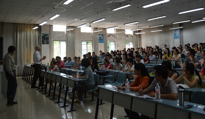Tim Smalley教授用生动幽默的语言介绍了乔治亚大学校园乌桕、桑树、白皮松等原产中国的珍贵树种,并讲述与之相关的名人、运动和生活故事,引起学生对树木进行认知保护和研究的愿望。