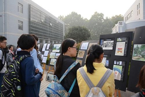 此次优秀作品展,共展出我校不同院系的学生作品共计190余幅。涵盖平面设计、景观设计、插画设计、素描、水彩、油画、印章、陶艺、中国画等多种表现形式。所参展的作品内容丰富,形式多样,异彩纷呈,充分展现了我校当代大学生的风采与艺术素养,对校园人文艺术氛围的营造与公共艺术教育的提升起着积极的作用。