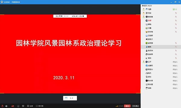 2020年春季学期第一周以来,风景园林艺术学院将加强政治理论学习作为教职工思想政治工作的重要内容,将疫情防控和学院近期重点工作相结合,坚持学习制度,拓展学习内容,灵活学习形式,提升学习效果,抗疫不停学,充电不止步,为推进学校及学院发展,加快“双一流”建设提供强有力的思想保证和精神动力。