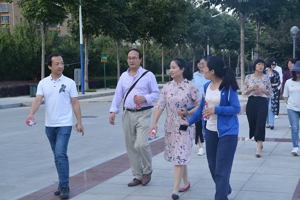 学院50余名教职工从学院出发,途经图书馆、栾树路、学校西大门、外专公寓、学院花卉基地等。一路上大家结伴而行,欣赏校园美景,交流工作经验,抒发生活感悟,谈笑风生、欢声笑语,度过了一个快乐美好的教师节。