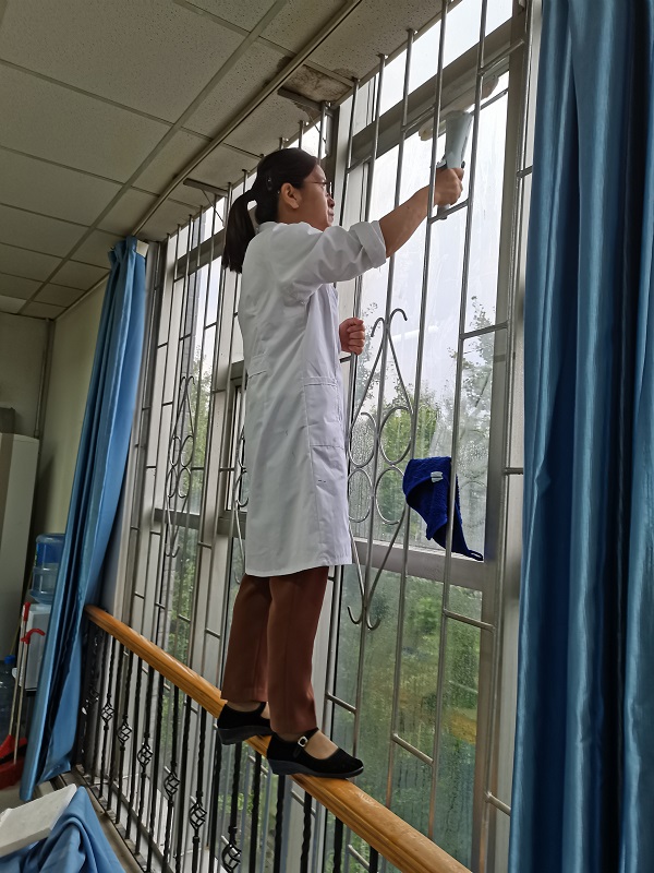 我院有三个教学实验室,3个学科平台,30多个实验(画室)房间,实验人员仅6人,但大家尽职尽责,齐心协力,克服困难,任劳任怨,上高岩低,各个都是女汉子,利用一周左右的时间,把实验室(画室)室内外卫生进行了一次彻底清理,每个实验(画室)环境整洁,窗明几净,为师生创造良好的工作学习环境。