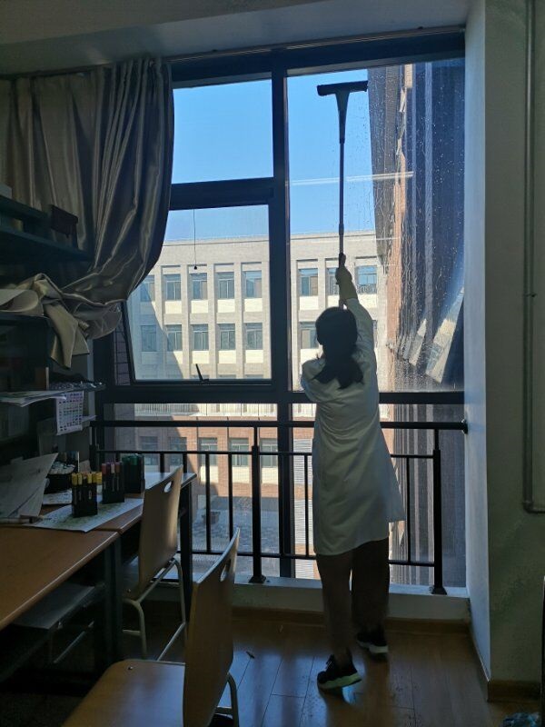突如其来的新冠肺炎病毒迫使我们对实验室的环境安全要更加重视,按照疫情防控的要求,实验室工作人员始终以维护师生健康安全、创造良好的工作学习环境为己任。本次大扫除工作,不仅确保对实验(实训)工作环境进行消毒消杀,而且要做到“扎实细致、不留死角”的清洁,对长期堆放的闲置物品进行清理,仪器设备合理布局,对屋顶、墙面、窗户玻璃,仪器柜等日常容易忽视或遗忘的死角、地面顽固污渍进行彻底的清除。