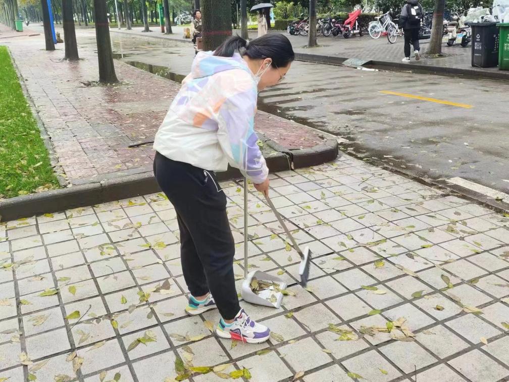 活动开展期间,恰逢金秋连日降雨,持续降水导致校园内落叶堆积、部分路段积水,既影响环境整洁,也给师生出行带来安全隐患。为高效推进整治工作,兼顾学生时间安排与身体健康,学院社会实践部前置开展校园卫生状况调研,科学制定方案,创新采用“自主报名+自主选点”模式,通过班级群推送、线下动员等多渠道广泛号召,引导学子结合课余时间主动参与,自主选定教学区楼道、办公楼前广场、生活区道路、绿化带等重点区域开展针对性清扫。